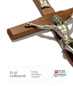 „Es ist vollbracht“ Bilder, Lieder und Gedanken zur Passion Jesu „Es ist vollbracht.“ Mit diesen Worten stirbt Jesus – nach dem Zeugnis des Johannes-Evangeliums – am Kreuz von Golgatha. Am Freitag, den 20. Februar 2026, also direkt zum