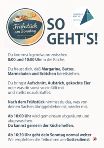 Jetzt Sonntag, 8:00 – 10:00 Uhr: Frühstück am Sonntag